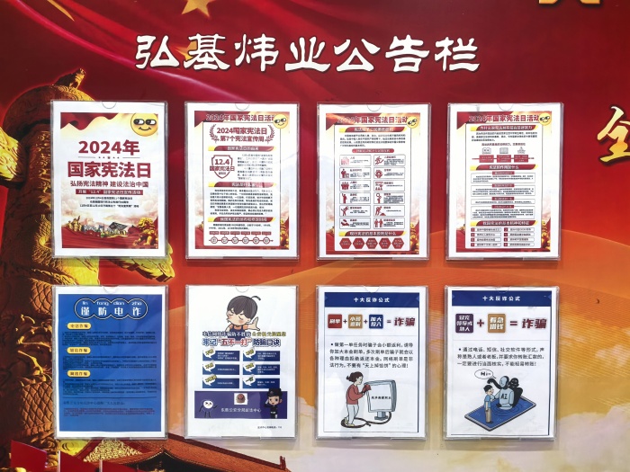 活動當(dāng)天,弘基煒業(yè)集團堅持黨建引領(lǐng)抓實效,要求公司各部門根據(jù)實際情況開展憲法宣傳活動,深入學(xué)習(xí)宣傳貫徹習(xí)近平法治思想,堅持憲法確定的中國共產(chǎn)黨領(lǐng)導(dǎo)地位不動搖,集中教育引導(dǎo)員工認(rèn)真學(xué)習(xí)憲法,增強法治觀念,積極營造尊崇憲法、學(xué)習(xí)憲法、遵守憲法、維護(hù)憲法、運用憲法的良好氛圍。與此同時,集團公司依托公共屏幕播放憲法宣傳相關(guān)視頻,張貼宣傳海報,充分發(fā)揮新媒體平臺作用,在集團網(wǎng)站、官方微信公眾號等宣傳載體轉(zhuǎn)發(fā)高質(zhì)量宣傳信息,嚴(yán)格落實意識形態(tài)工作責(zé)任制,牢牢把握憲法宣傳教育的正確政治方向和輿論導(dǎo)向,全力推動憲法宣傳教育取得實效。