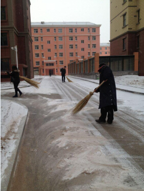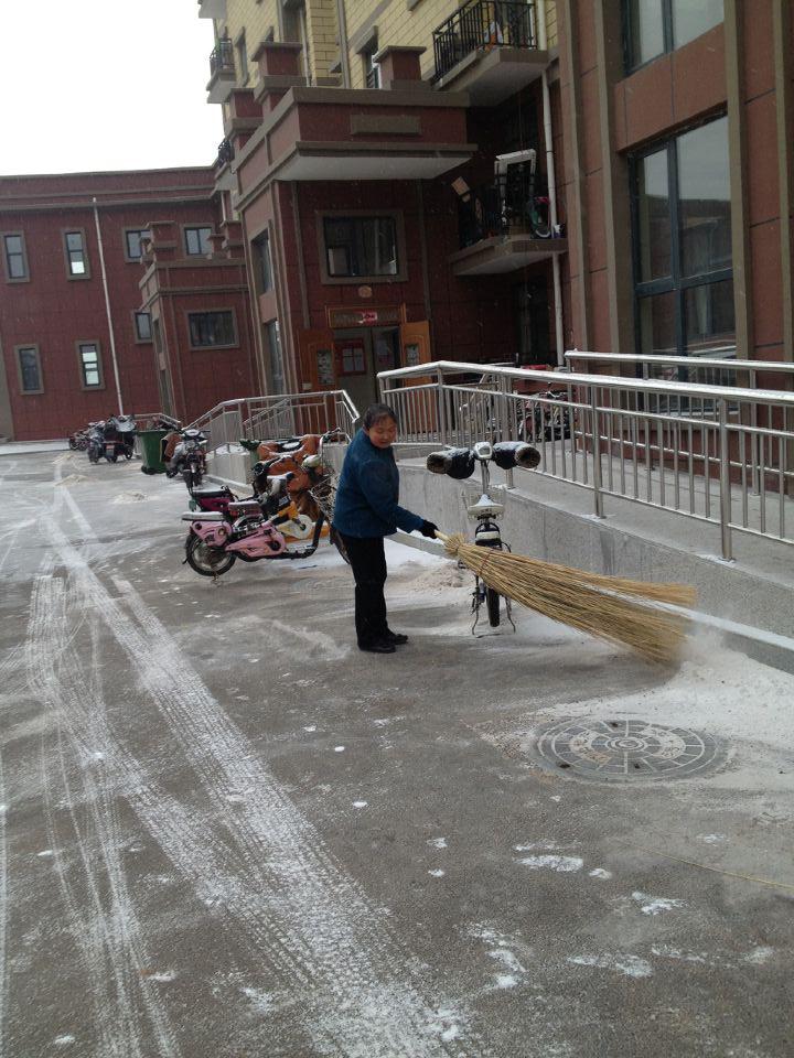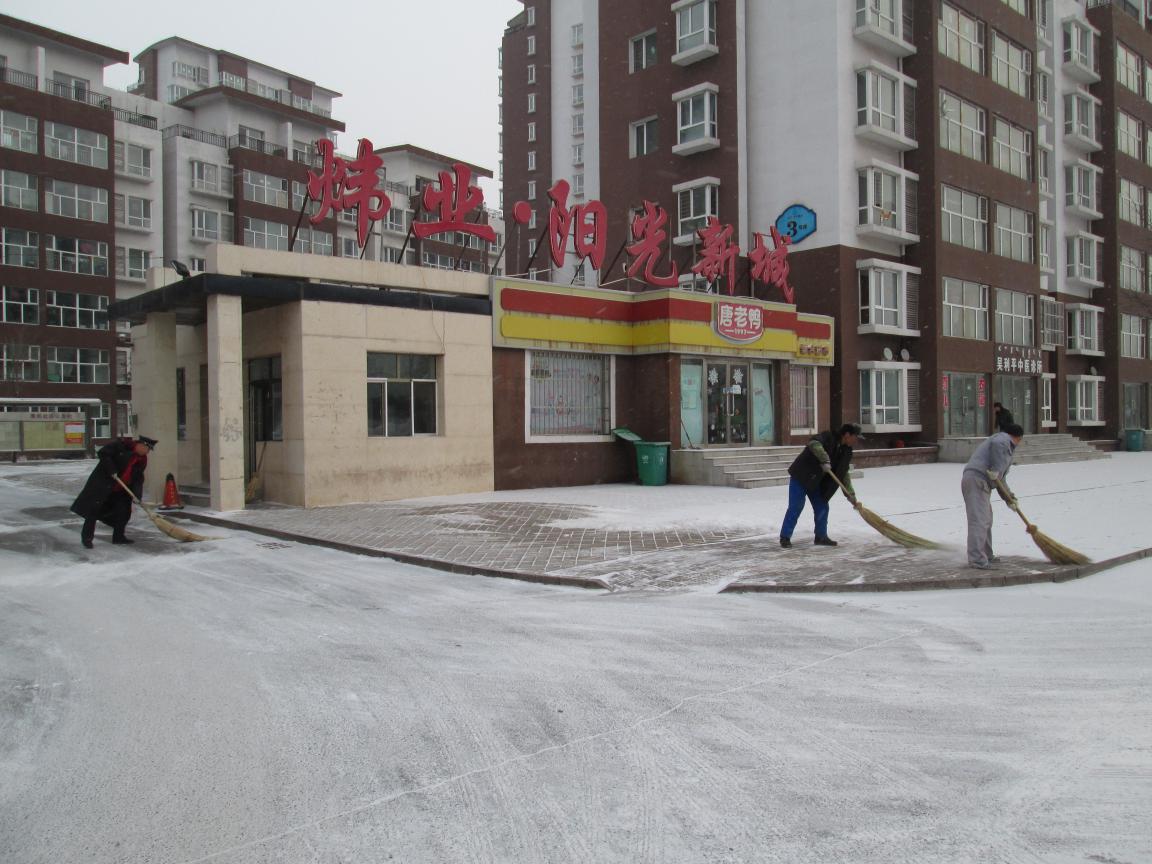 看到我們工作人員辛勤的掃雪,很多業(yè)主也自發(fā)的加入了我們的行列