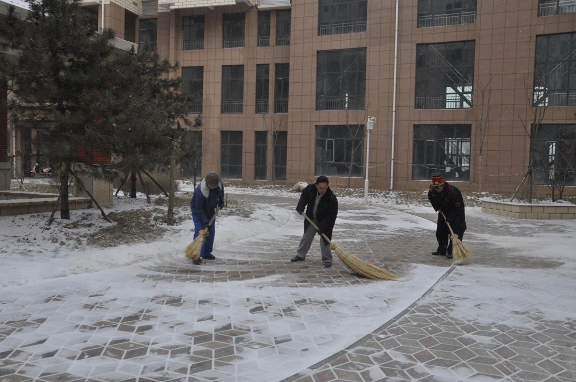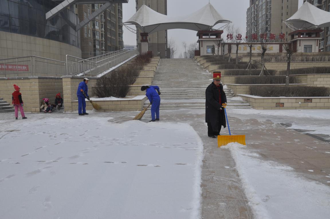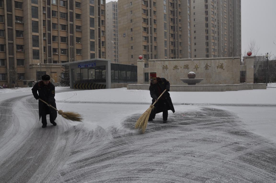 白雪紛飛何所似,撒鹽空中差可擬。世界被妝點成了白色,清新了空氣,也一掃人們久未有雪的陰郁心情。雪景雖美,但為人們出行帶來的不便也是實實在在的,為了保證業(yè)主們的出行安全,萬康物業(yè)各項目工作人員從一早就冒著嚴(yán)寒對項目小區(qū)內(nèi)的積雪進(jìn)行清掃,保證業(yè)主們的出入平安。雪依然在下,但路不會滑。