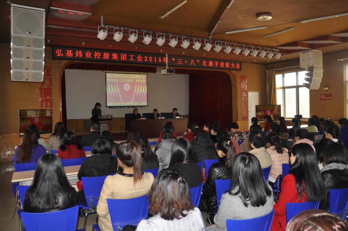 為認(rèn)真貫徹落實(shí)黨的十八屆三中、四中全會(huì)和習(xí)近平總書(shū)記系列重要講話(huà)精神以及自治區(qū)、市級(jí)重要方針政策,積極響應(yīng)“巾幗建新功、共筑中國(guó)夢(mèng)”的號(hào)召,進(jìn)一步引領(lǐng)激勵(lì)我集團(tuán)廣大婦女弘揚(yáng)“四自”精神,在集團(tuán)發(fā)展建設(shè)中充分發(fā)揮“半邊天”的作用,弘基煒業(yè)控股集團(tuán)于2015年3月10日舉行“三八”紅旗手表彰大會(huì)。弘基煒業(yè)控股集團(tuán)工會(huì)主席李然淇主持會(huì)議,國(guó)資委工會(huì)主席張國(guó)棟、弘基煒業(yè)控股集團(tuán)黨總支副書(shū)記趙樹(shù)林出席會(huì)議,黨總支委員會(huì)委員、工會(huì)委員會(huì)委員、弘基煒業(yè)控股集團(tuán)全體女職工參加會(huì)議。