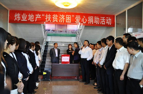 2012年5月16日上午9時(shí)許,煒業(yè)地產(chǎn)全員在馮鳳祥副總的組織帶領(lǐng)下對(duì)業(yè)主于蘭一家予以愛(ài)心捐助(注:回遷戶于蘭女士有個(gè)殘障孩子,家庭負(fù)擔(dān)較重),扶危濟(jì)困,承擔(dān)社會(huì)責(zé)任。